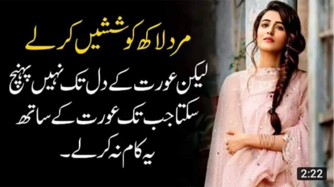 کسی سماج میں عورت کی اس سے زیادہ ذلت اور کیا ہو سکتی ہے کہ وہ مردانہ سماجی دباؤ کے تحت خود بیٹی پیدا کرنا غزل کتابیں پڑھنے والی عورت بہت دیر سے محبت پر ایمان لاتی ہے کیونکہ وہ جانتی ہے کہ تخیل حقیقت سے زیادہ خوبصورت ہوتا ہے مرد کے سر ہلمٹ نہ ہونے سے چلانا ہو سکتا ہے
