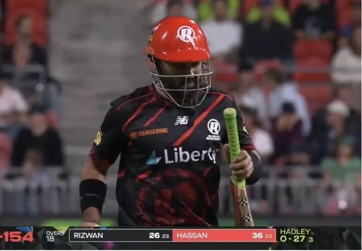 میلبرن رینیگیڈز کی نمائندگی کرنے والے محمد رضوان نے صرف 23 گیندوں پر 26 رنز بنائے، جن میں 9 گیندوں پر وہ کوئی رن نہ بنا سکے۔ ان کی اننگز میں دو چوکے اور ایک چھکا شامل تھا، تاہم ان کا اسٹرائیک ریشو صرف 113 رنز فی 100 گیند تھا۔